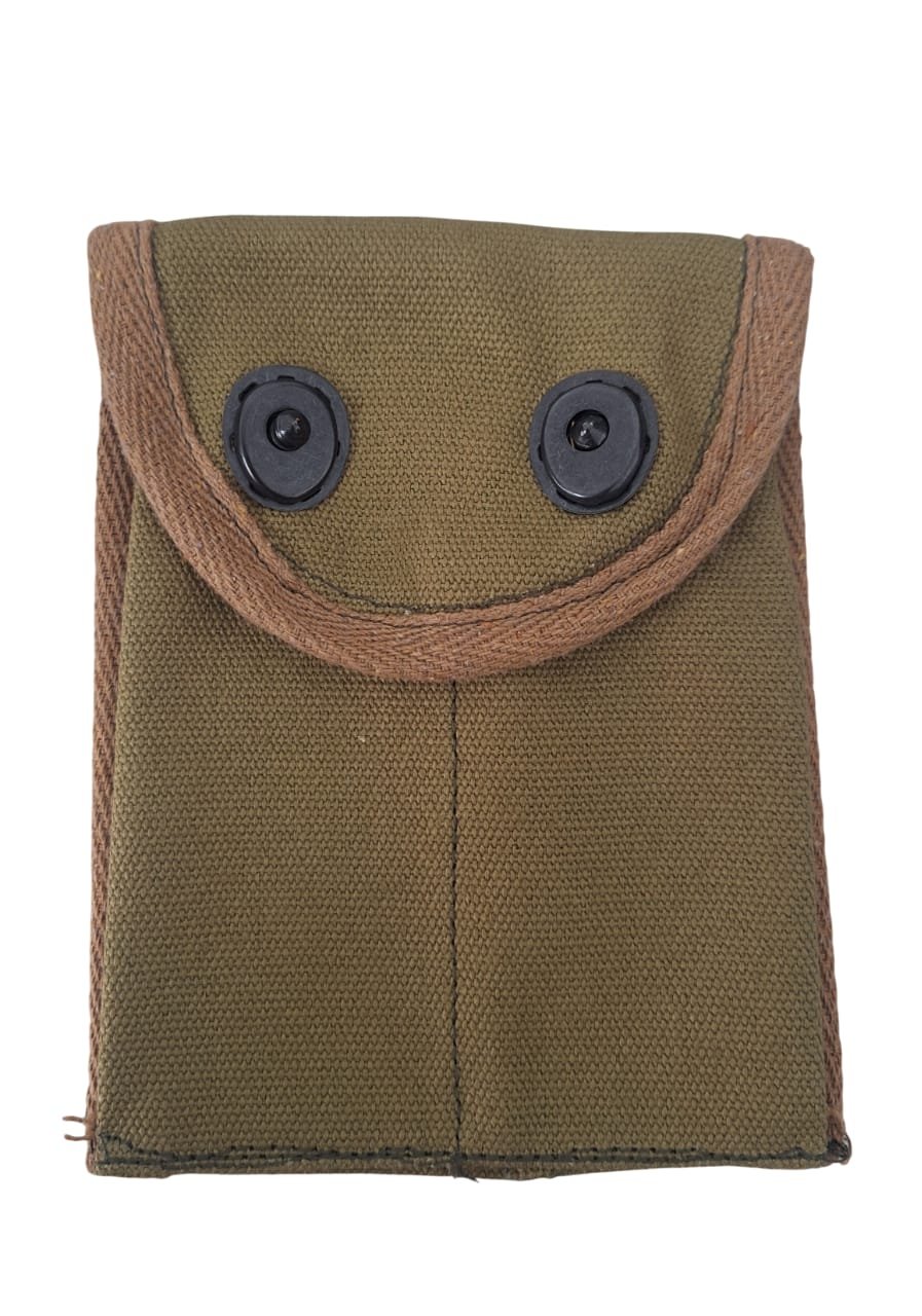 Estojo em lona 100% algodão com ferragem militar autêntica. Cor verde-oliva, tipo Olive Drab 03.