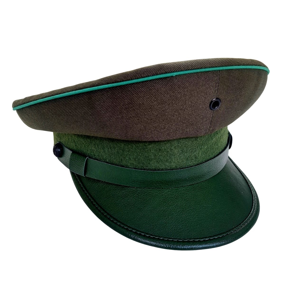 Reprodução de quepe do EB, chamado de “boné” nos regulamentos. Moldado no formato do quepe dos anos 30 e 40, com pala e fita nas cores regulamentares do período.